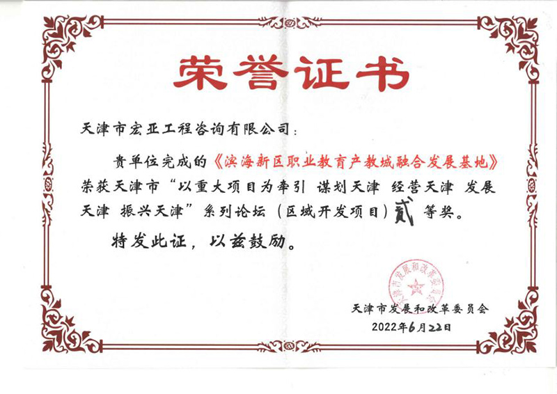 基地》項(xiàng)目榮獲天津市發(fā)展和改革委員會(huì)頒發(fā)的天津市“以重大項(xiàng)目為牽引 謀劃天津 經(jīng)營(yíng)天津 發(fā)展天津 振興天津”系列論壇(區(qū)域開(kāi)發(fā)項(xiàng)目)貳等獎(jiǎng)。