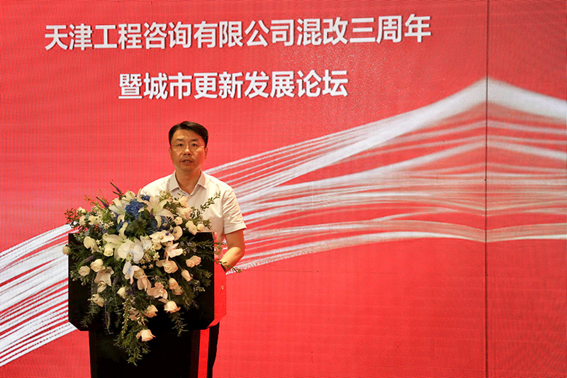 天津市國資委改革處副處長袁薔致辭。代表市國資委向天津咨詢混改三周年表示祝賀,也向關(guān)心和支持天津國資國企改革發(fā)展的各界朋友表示感謝。天津咨詢混改三年引進了先進的管理理念和經(jīng)營機制,實現(xiàn)了國有資產(chǎn)的保值增值,扎根天津、服務天津,加深了津滬兩地國資國企之間的合作與共贏。希望天津咨詢保持向好發(fā)展。不斷拓寬經(jīng)營思路,健全經(jīng)營機制,努力挖掘自身優(yōu)勢,提高企業(yè)核心競爭力,為混改后天津國資參股企業(yè)保持更好更快發(fā)展樹立典型。希望天津咨詢服務天津發(fā)展。主動融入和服務“十項行動”,持續(xù)推進“三新”“三量”工作,抓住有利時機,充分發(fā)揮在城市更新、資產(chǎn)盤活等方面的咨詢技術(shù)優(yōu)勢,為天津的城市建設和經(jīng)濟發(fā)展“添秤”。希望天津咨詢發(fā)揮紐帶作用。繼續(xù)穩(wěn)步推進改革,將上海國企的先進理念引入天津,進一步發(fā)揮好上海國資和天津國資之間的紐帶作用,為推動雙方互利共贏做出積極貢獻。