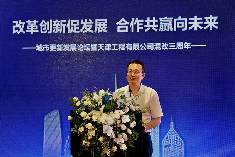 上海建科集團黨委委員、副總裁、天津咨詢董事長何錫興主持混改三周年活動