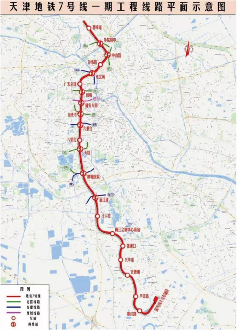 天津地鐵7號線一期工程正線全長約26.53公里,共設車站21座,均為地下站。新建大寺車輛段1座,新建六里臺主變電所1座,與10號線共享主變電所1座??刂浦行奈挥诘罔F3號線華苑車輛段內(nèi),備用控制中心設在本線大寺車輛段內(nèi)。項目公司在合作期內(nèi)負責本項目設計優(yōu)化、投融資、建設、運營管理、運營維護、更新改造、追加投資以及授權(quán)范圍內(nèi)的非客運業(yè)務經(jīng)營等工作。概算總投資268.97億元。