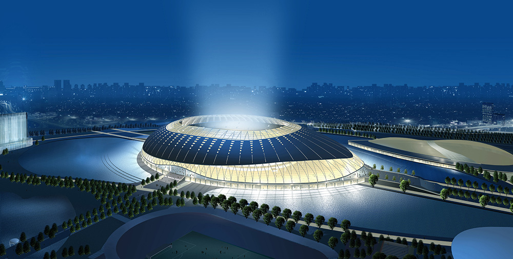 天津奧林匹克中心體育場(chǎng)位于天津西南部的奧林匹克中心內(nèi),占地34.5公頃,總投資14.8億元,整個(gè)中心體育場(chǎng)占地7.8萬平米,建筑面積15.8萬平米,該體育場(chǎng)南北長380米,東西長270米,高53米,設(shè)計(jì)分為六層??磁_(tái)3.48萬平米,8+1跑道4560平方米,訓(xùn)練場(chǎng)2萬平米,草皮場(chǎng)地7680平米,體育場(chǎng)擁有觀眾座席6萬個(gè),主席臺(tái)座席500人,記者席300人,總體可容納8萬人。