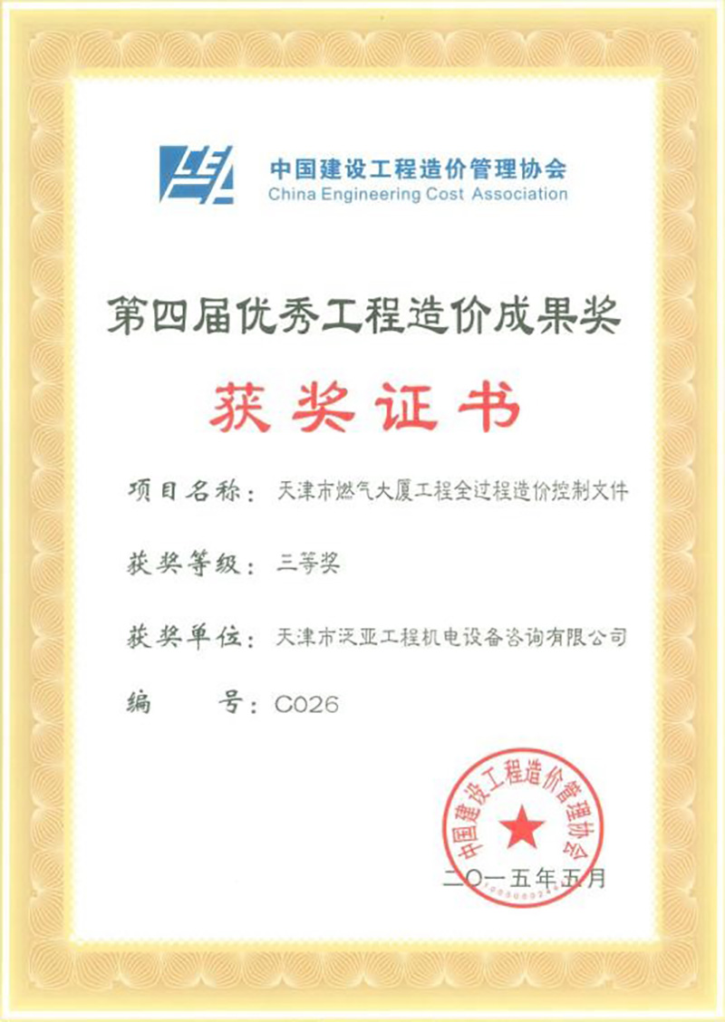 2015第四屆優(yōu)秀工程造價(jià)成果獎