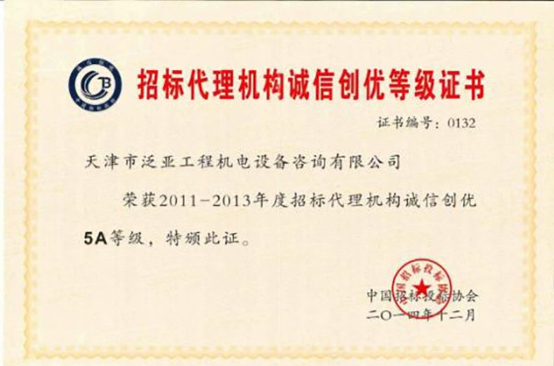 2011-2013年度招標(biāo)代理誠信創(chuàng)優(yōu)5A級(jí)企業(yè)
