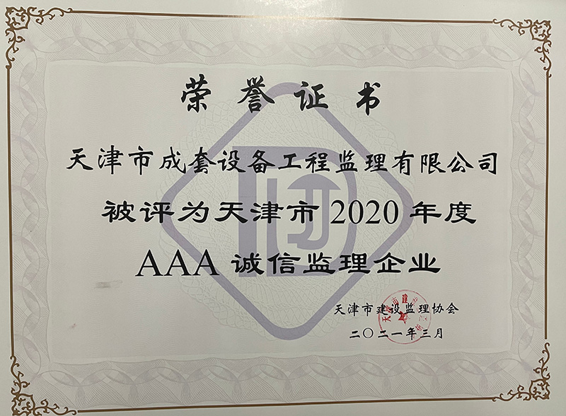 天津市2020年度AAA誠信監(jiān)理企業(yè)