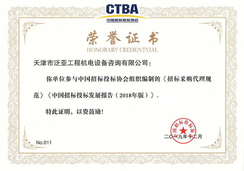 招標(biāo)采購代理規(guī)范編制榮譽證明