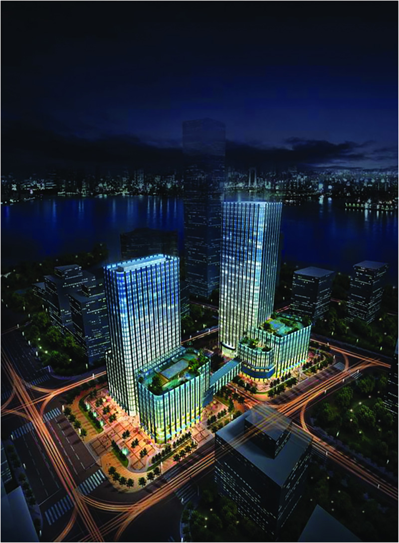 坐落于天津濱海新區(qū)響鑼灣中心商務(wù)商業(yè)區(qū)。項目集酒店公寓、商業(yè)及辦公樓于一體,總建筑面積18.7萬平米,由兩座分別為120米和150米的超高層塔樓及6-9層裙樓組成。其中辦公樓39層,酒店公寓樓30層。