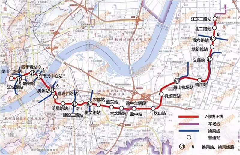 項目建設(shè)規(guī)模7號線工程自吳山廣場站至江東二路站,全長47.481公里,全部為地下線,共設(shè)車站23座,新建江東三路停車場1座,盈中車輛段1座,總投資約305.297億元;建設(shè)地址位于杭州市,計劃于2021年建成。