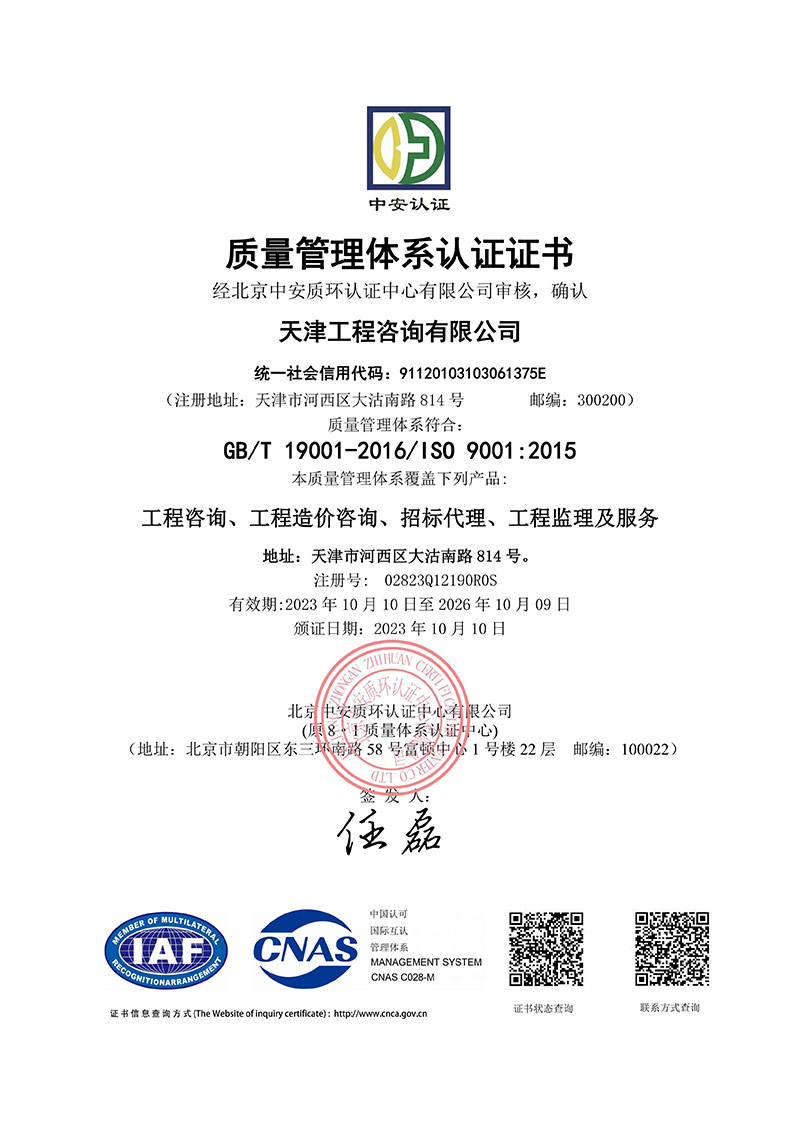 同時(shí),為進(jìn)一步規(guī)范公司內(nèi)部管理,保障服務(wù)質(zhì)量,向管理要效益,天津咨詢啟動(dòng)了ISO三大管理體系認(rèn)證工作。本次通過(guò)ISO三大管理體系認(rèn)證審核,對(duì)于公司完善管理體系,推動(dòng)質(zhì)量、環(huán)境、職業(yè)健康安全管理體系持續(xù)有效運(yùn)行,進(jìn)一步提高管理水平具有重要意義,不僅有助于增強(qiáng)企業(yè)競(jìng)爭(zhēng)力,而且樹(shù)立了優(yōu)良企業(yè)形象。