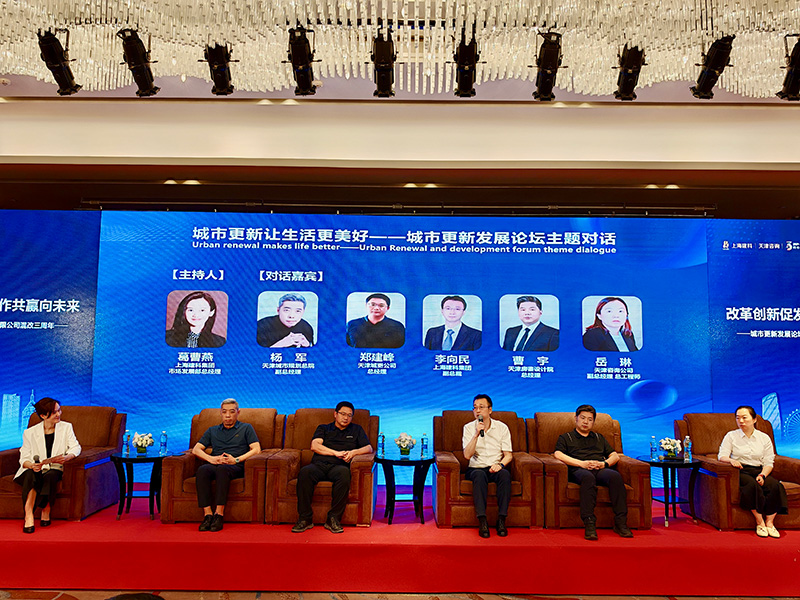 城市更新發(fā)展論壇圍繞城市更新政策引領、新技術(shù)應用等領域,共同探討城市更新建設的發(fā)展新理念、新模式、新技術(shù)。上海建科集團黨委委員、副總裁李向民、天津城市規(guī)劃總院城市更新分院院長張娜、天津咨詢副總經(jīng)理、總工程師岳琳分別就《城市更新之上海建科研究與實踐》《實施城市更新行動,共劃城市發(fā)展轉(zhuǎn)型》《天津市城市更新產(chǎn)業(yè)策劃及投融資平衡研究》作專題演講。圍繞城市更新讓生活更美好主題,上海建科集團副總裁李向民、天津城市規(guī)劃總院副總經(jīng)理楊軍、天津房鑒設計院總經(jīng)理曹宇、天津城市更新發(fā)展公司總經(jīng)理鄭建峰、天津咨詢副總經(jīng)理、總工程師岳琳進行“主題對話”。上海建科集團市場發(fā)展部總經(jīng)理葛曹燕主持城市更新發(fā)展論壇。