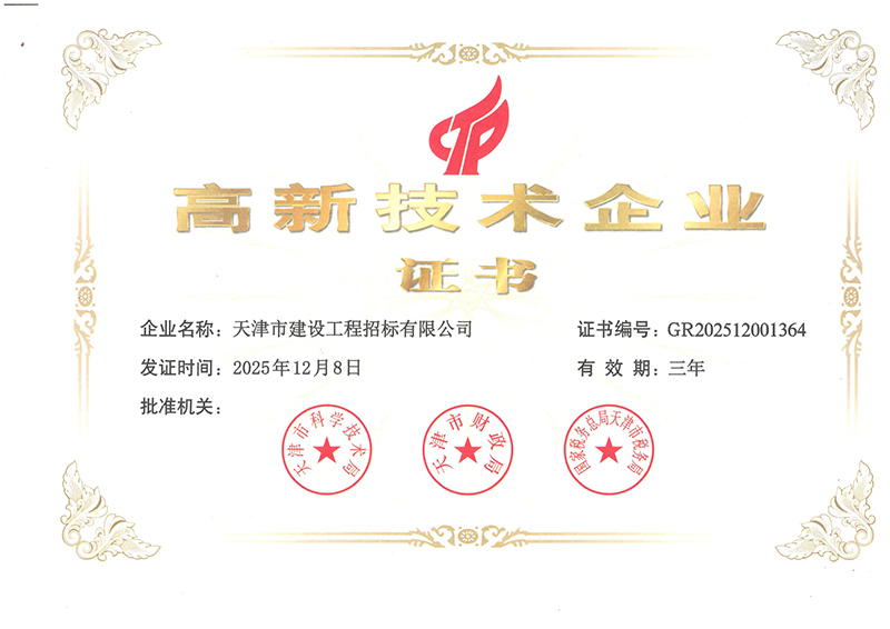 近日,經(jīng)天津市科學(xué)技術(shù)局、財政局、稅務(wù)局聯(lián)合評審,天津咨詢所屬天津市建設(shè)工程招標(biāo)有限公司成功通過高新技術(shù)企業(yè)認(rèn)證,正式躋身國家高新技術(shù)企業(yè)行列。此前,天津咨詢所屬另外一家“高新技術(shù)企業(yè)”天津市泛亞工程咨詢有限公司,也于2025年12月順利通過復(fù)審。