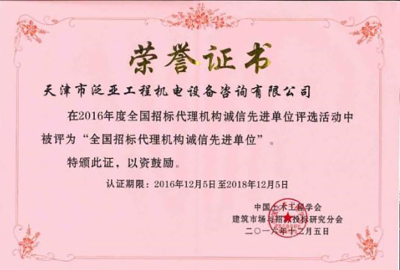 2016年度招標(biāo)代理機(jī)構(gòu)先進(jìn)單位