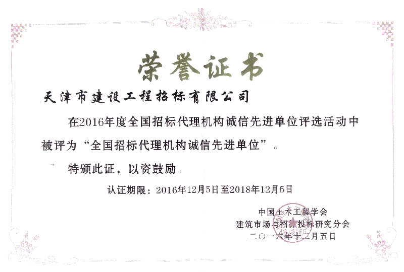 2016年度全國招標(biāo)代理機(jī)構(gòu)誠信先進(jìn)單位