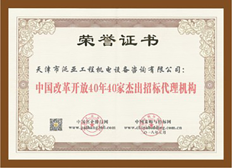 2018改革開(kāi)放40年40家杰出招標(biāo)代理機(jī)構(gòu)
