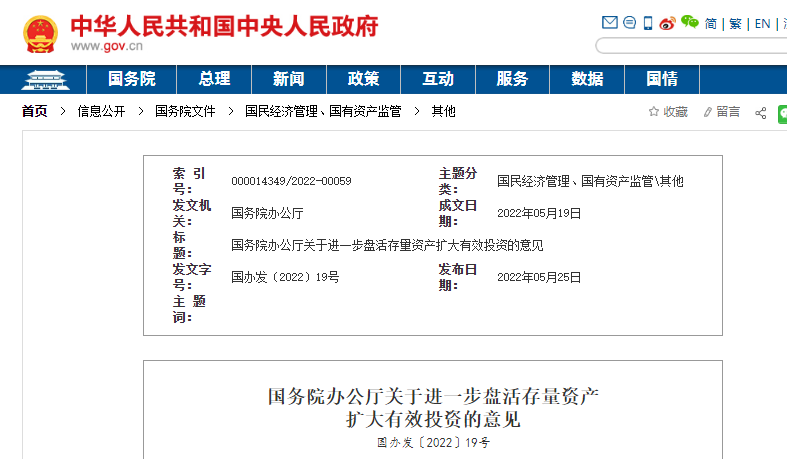 國(guó)務(wù)院辦公廳關(guān)于進(jìn)一步盤(pán)活存量資產(chǎn)擴(kuò)大有效投資的意見(jiàn)